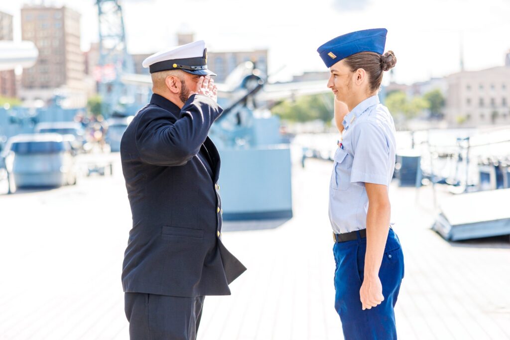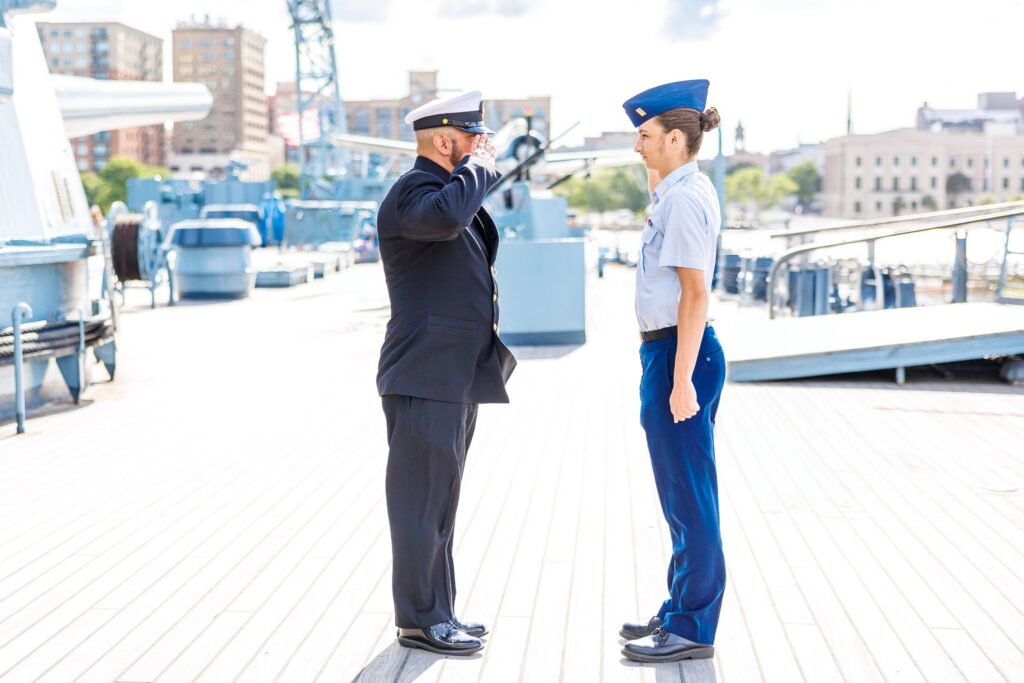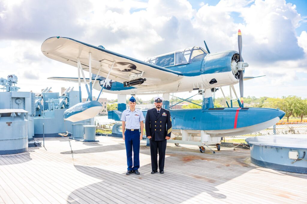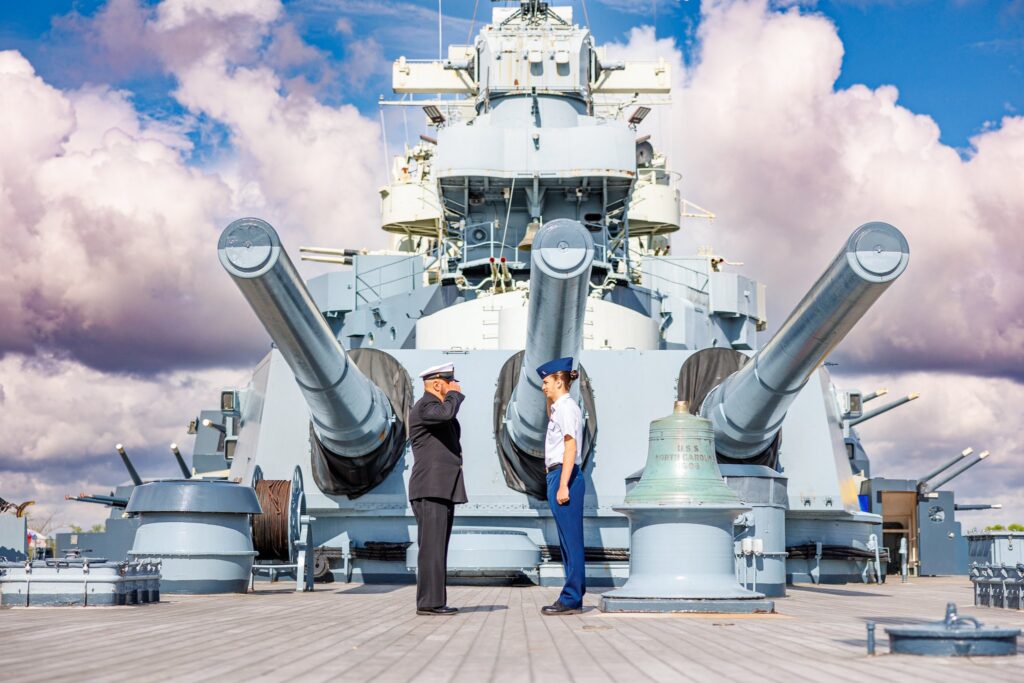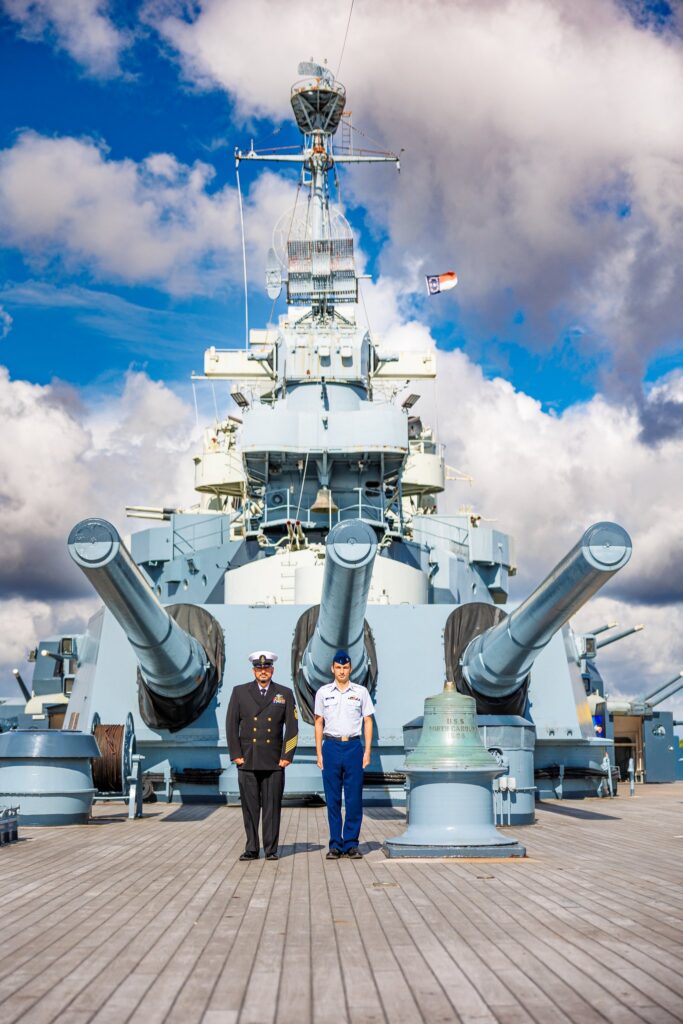 The USS North Carolina is a popular tourist destination in Wilmington, NC. While editing programs allow for the removal of items and people, we wanted to avoid the crowd as much as possible. We decided to start the session early in the morning, which was perfect because we were able to avoid most of the other guests while exploring the ship. We spent some time getting solo portraits before moving on to the images of Colby and his dad. It was awesome to see the two of them bond over their shared love of the military.